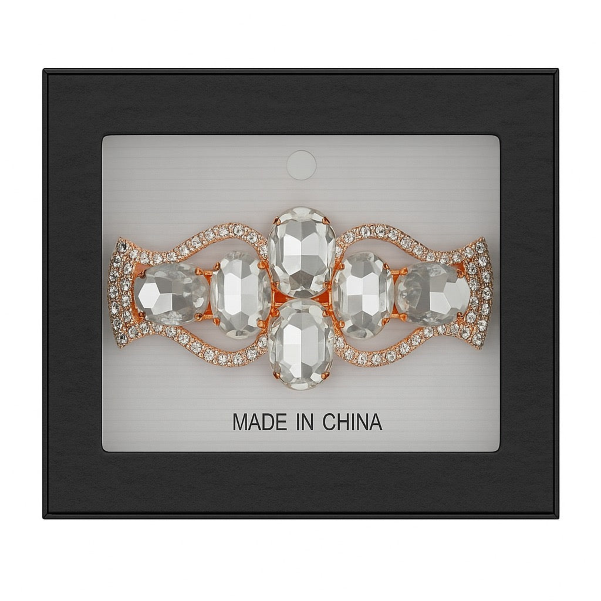 Elevate your hairstyle with this exquisite Crystal Embellished Hair Clip. Featuring a symmetrical design of large, multifaceted clear gemstones, this elegant accessory is set in a warm rose gold-tone metal. The surrounding fine rhinestones add a touch of sparkle, making it perfect for weddings, parties, or everyday glam. The clip comes neatly packaged in a sleek black presentation box with a transparent window, ideal for gifting or display. Crafted with attention to detail, this hair clip offers both secure hold and timeless style.